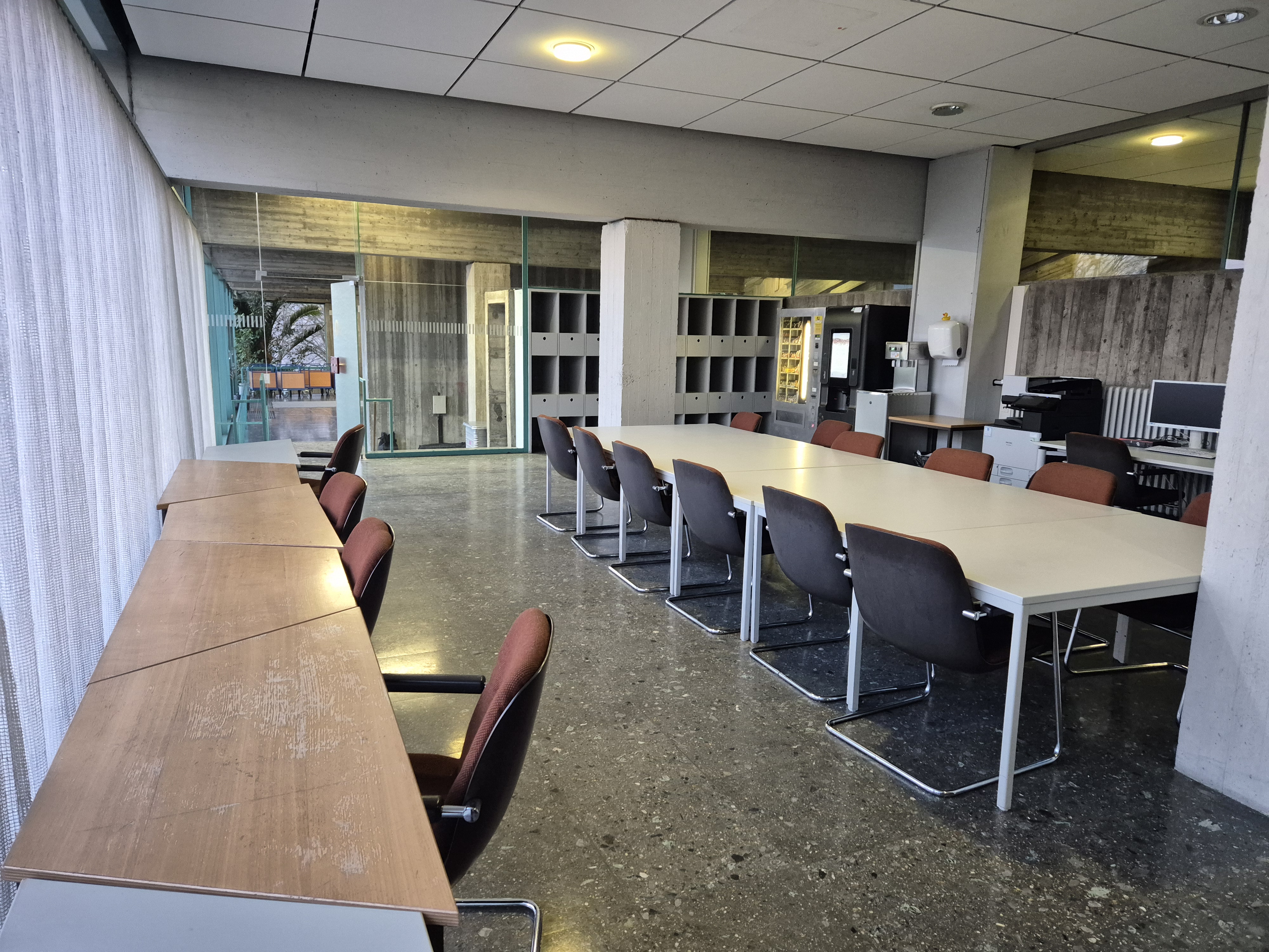 - großer Aufenthaltsraum mit Wasserspender und Kaffee- und Snackautomat